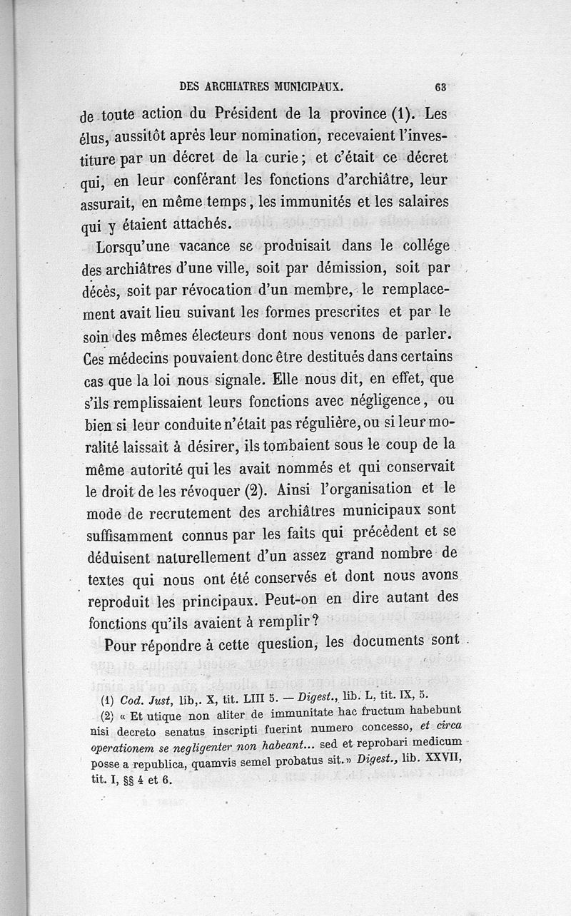 L'archiatrie romaine ou la médecine officielle dans l'Empire romain. Suite de l'histoire de la profession médicale par le Dr René Briau, bibliothécaire de l'Académie de médecine
