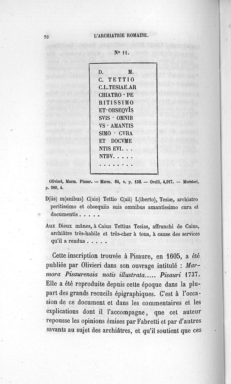 L'archiatrie romaine ou la médecine officielle dans l'Empire romain. Suite de l'histoire de la profession médicale par le Dr René Briau, bibliothécaire de l'Académie de médecine