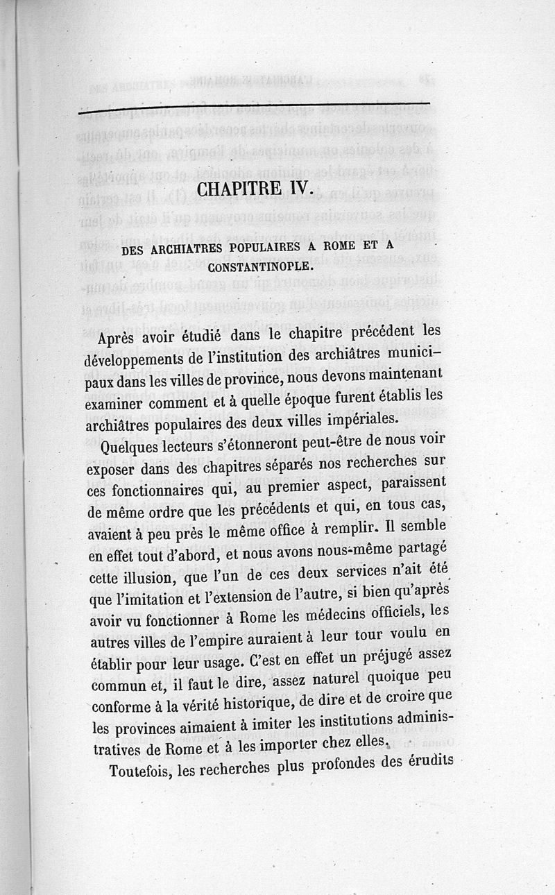 L'archiatrie romaine ou la médecine officielle dans l'Empire romain. Suite de l'histoire de la profession médicale par le Dr René Briau, bibliothécaire de l'Académie de médecine
