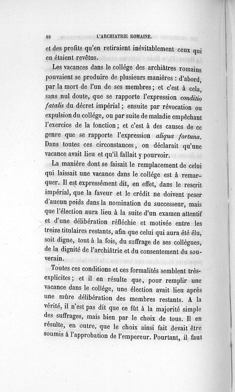 L'archiatrie romaine ou la médecine officielle dans l'Empire romain. Suite de l'histoire de la profession médicale par le Dr René Briau, bibliothécaire de l'Académie de médecine