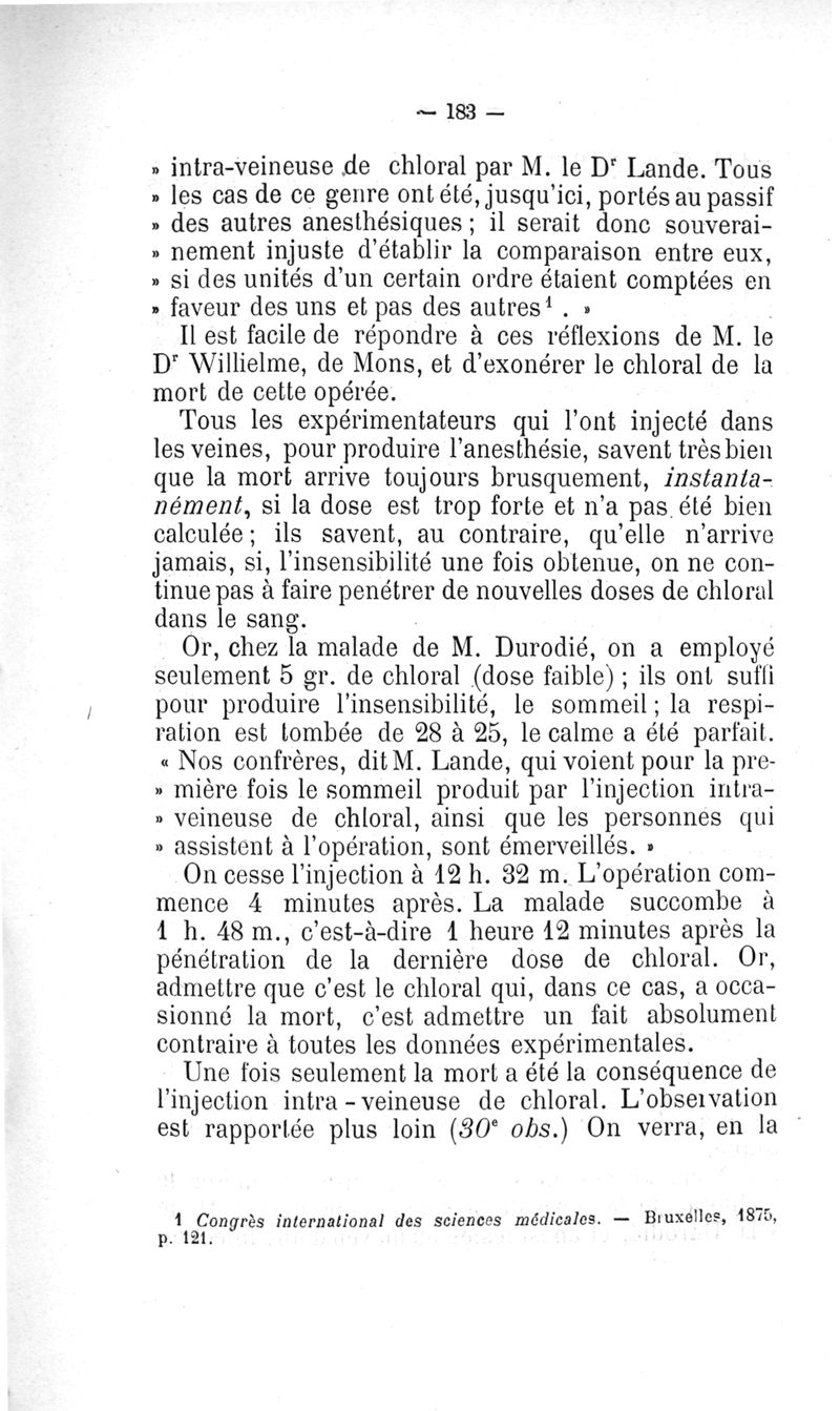 Le chloral et la médication intraveineuse : études de physiologie expérimentale, applications à la thérapeutique et à la toxicologie