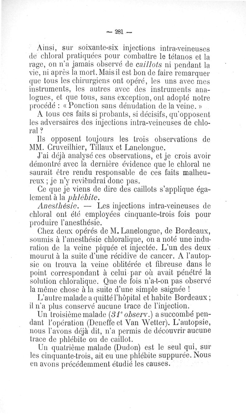 Le chloral et la médication intraveineuse : études de physiologie expérimentale, applications à la thérapeutique et à la toxicologie