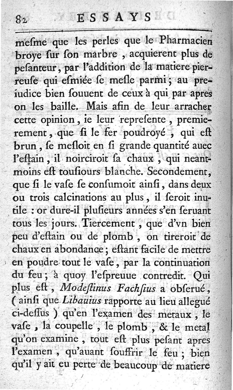 Essays de Jean Rey,...sur la recherche de la cause pour laquelle l'estain & le plomb augmentent le poids quand on les calcine ; nouvelle édition