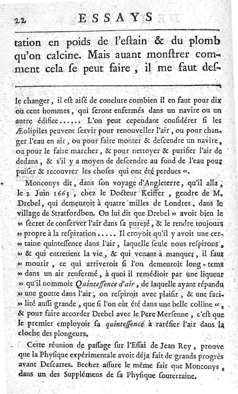 Essays de Jean Rey,...sur la recherche de la cause pour laquelle l'estain & le plomb augmentent le poids quand on les calcine ; nouvelle édition