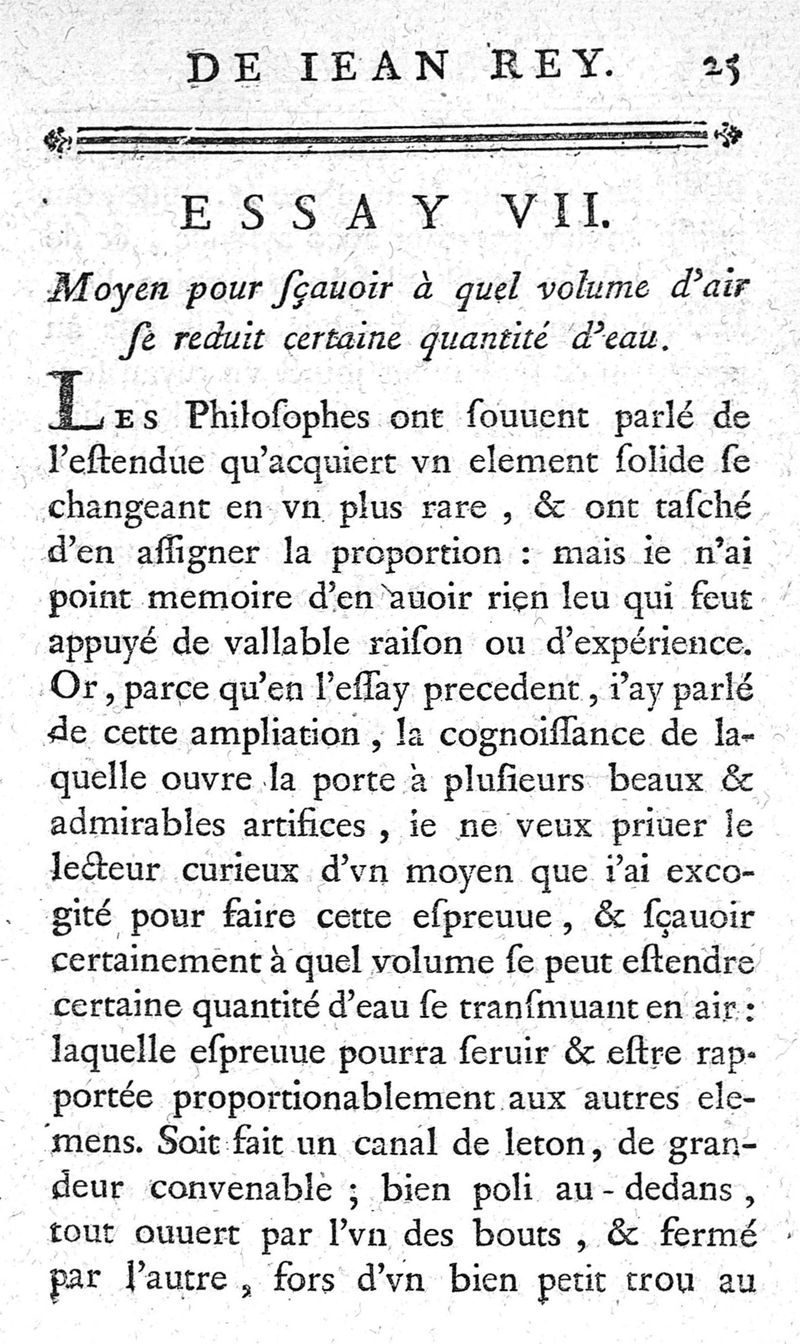 Essays de Jean Rey,...sur la recherche de la cause pour laquelle l'estain & le plomb augmentent le poids quand on les calcine ; nouvelle édition