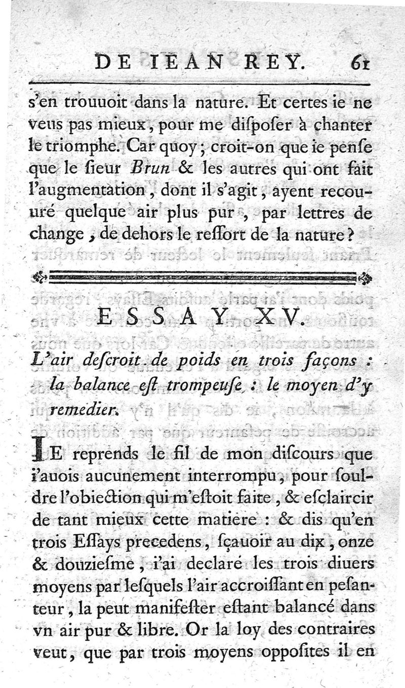 Essays de Jean Rey,...sur la recherche de la cause pour laquelle l'estain & le plomb augmentent le poids quand on les calcine ; nouvelle édition
