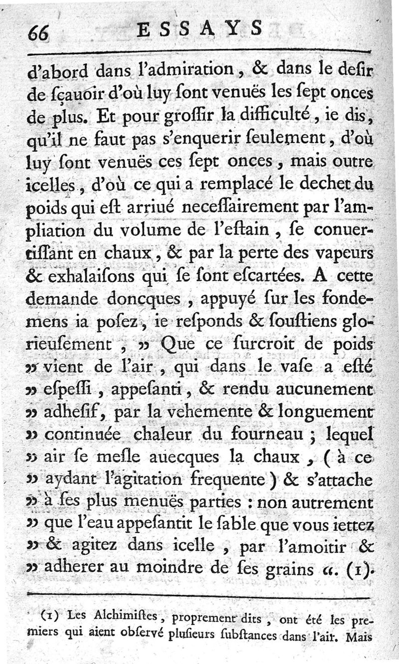 Essays de Jean Rey,...sur la recherche de la cause pour laquelle l'estain & le plomb augmentent le poids quand on les calcine ; nouvelle édition