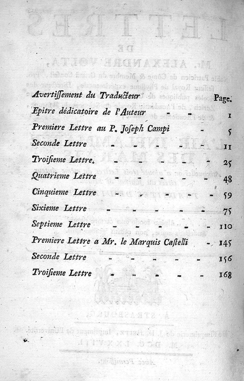 Lettres de Mr Alexandre Volta,... sur l'air inflammable des marais auxquelles on a ajouté trois Lettres du même auteur tirées du Journal de Milan ; trad. de l'italien