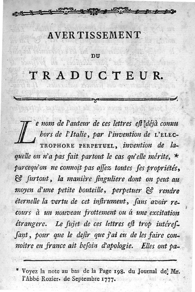 Lettres de Mr Alexandre Volta,... sur l'air inflammable des marais auxquelles on a ajouté trois Lettres du même auteur tirées du Journal de Milan ; trad. de l'italien