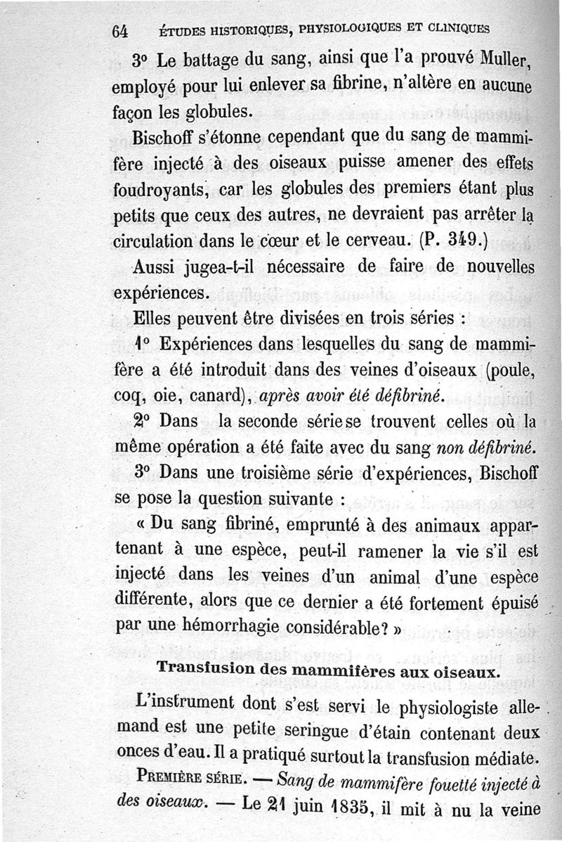 Etudes historiques, physiologiques et cliniques sur la transfusion du sang.- 2è éd.
