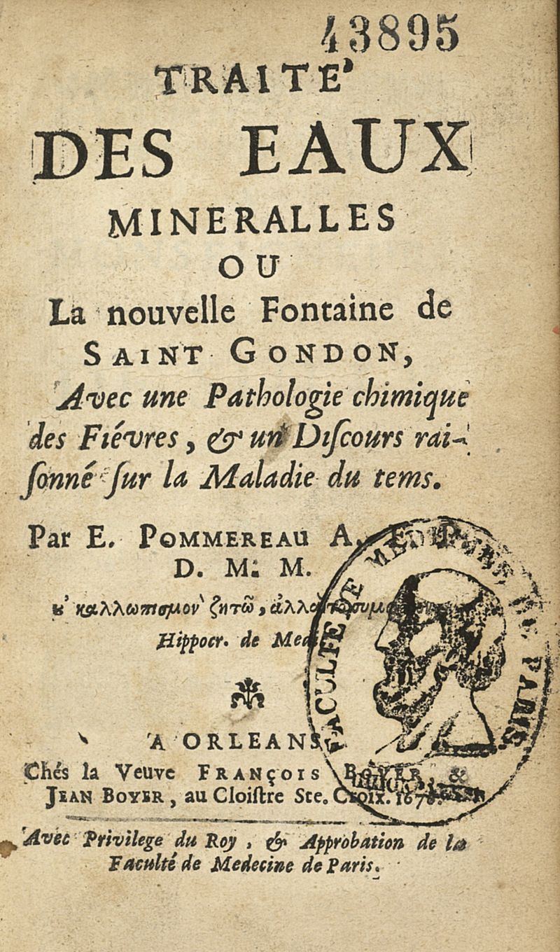 Traité des eaux mineralles ou la nouvelle fontaine de Saint Gondon avec une pathologie chimique des fièvres...