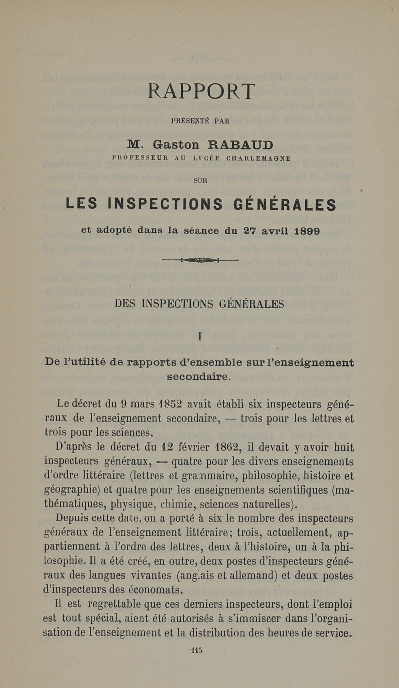 L'enquête sur l'enseignement secondaire. Rapports adressés à la commission parlementaire de l'enseignement