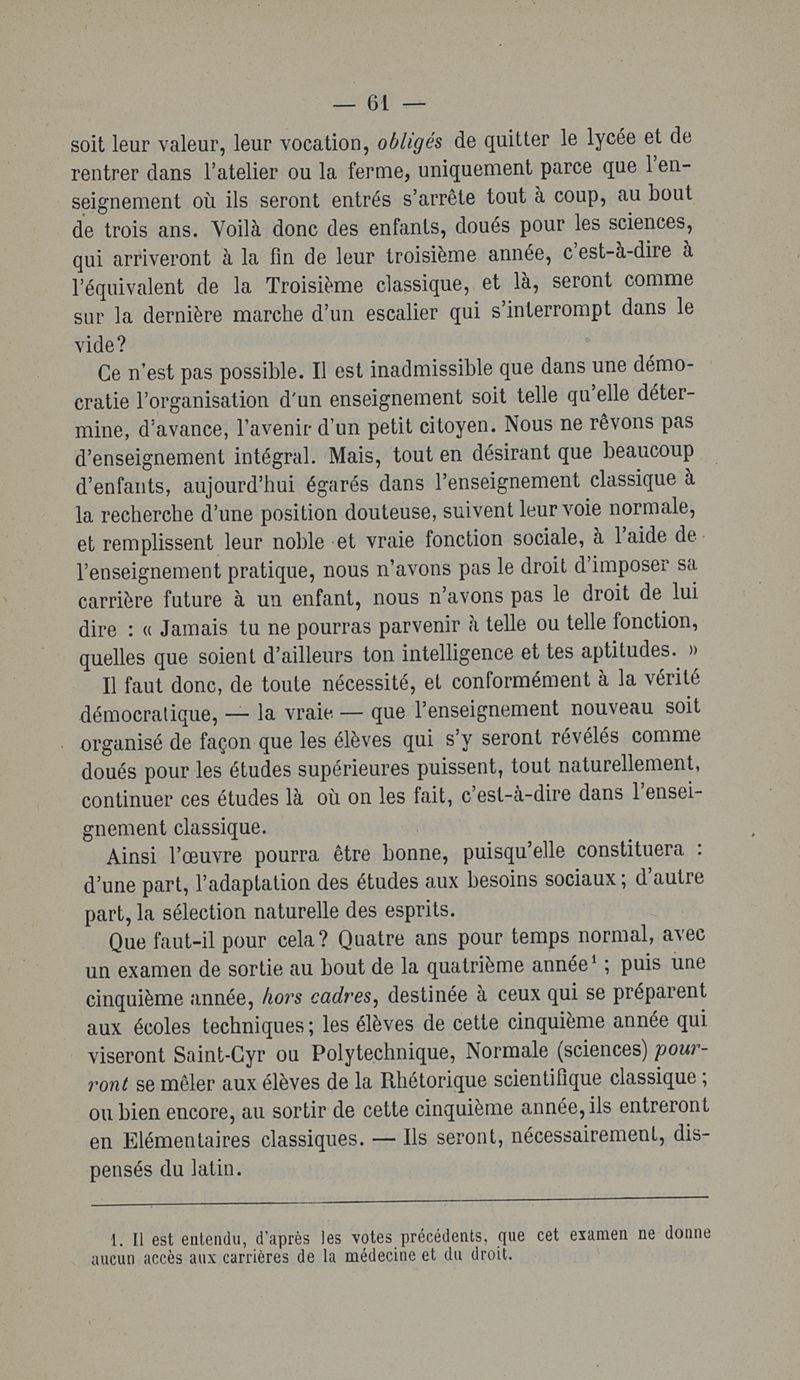 L'enquête sur l'enseignement secondaire. Rapports adressés à la commission parlementaire de l'enseignement