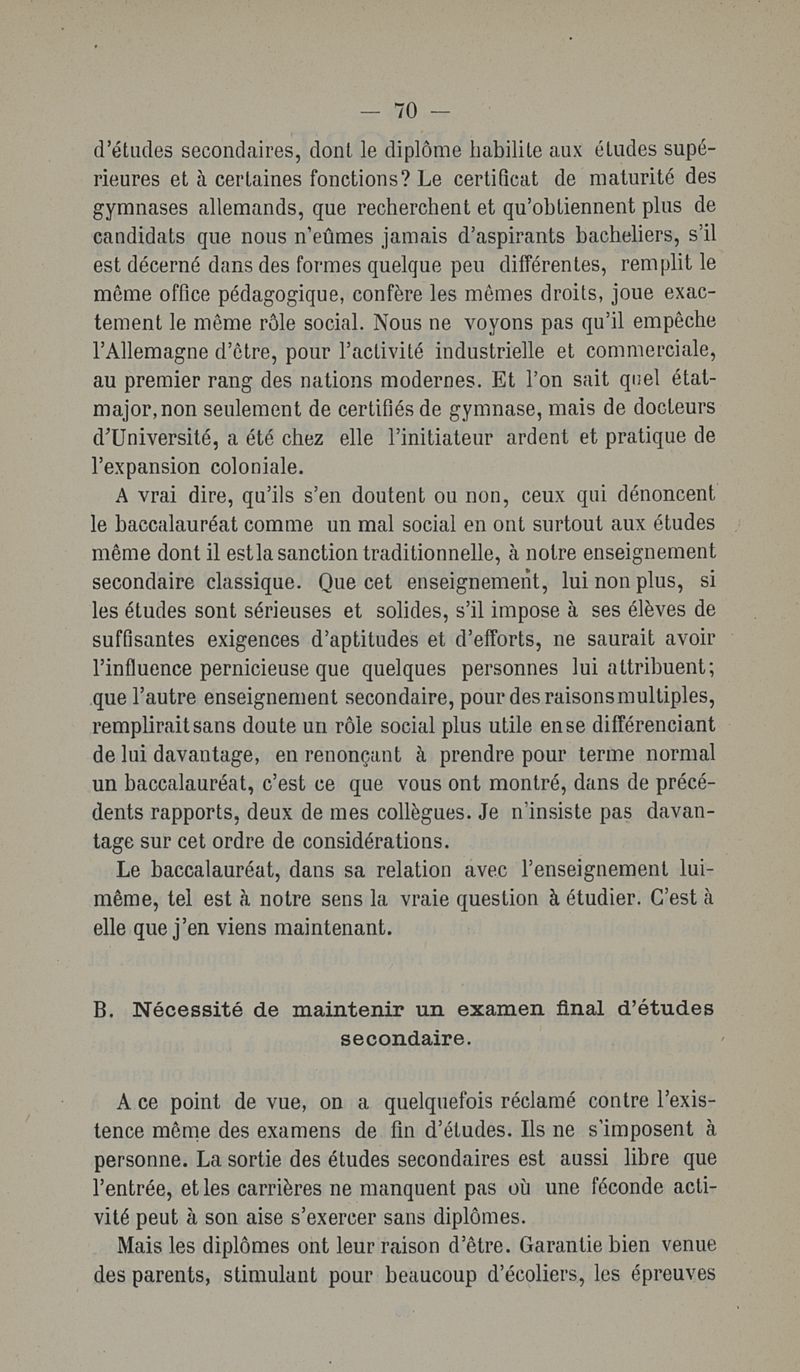 L'enquête sur l'enseignement secondaire. Rapports adressés à la commission parlementaire de l'enseignement