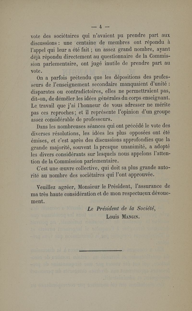 L'enquête sur l'enseignement secondaire. Rapports adressés à la commission parlementaire de l'enseignement