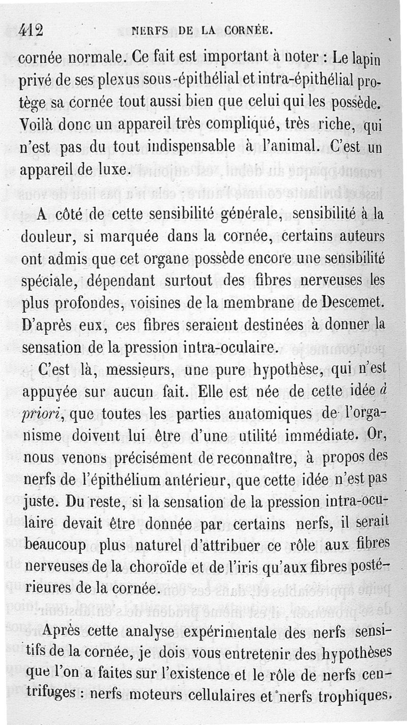 Leçons d'anatomie générale faites au Collège de France, par L. Ranvier. Année 1878-1879 : terminaisons nerveuses sensitives: cornée. Leçons recueillies par M.Weber