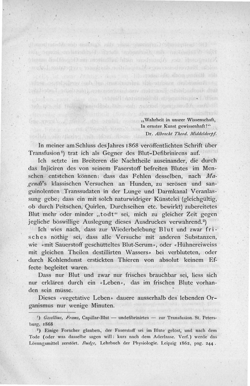 Die Transfusion des Blutes : eine historische, kritische und physiologische Studie