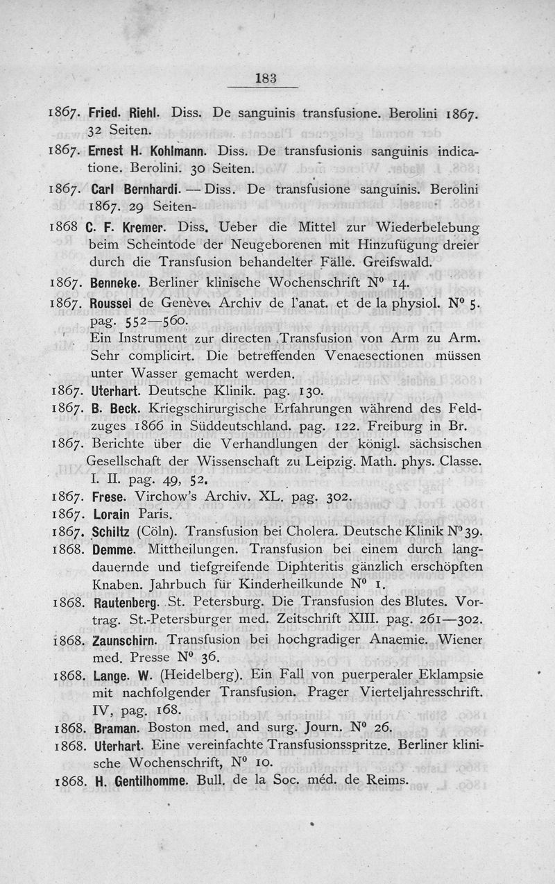 Die Transfusion des Blutes : eine historische, kritische und physiologische Studie