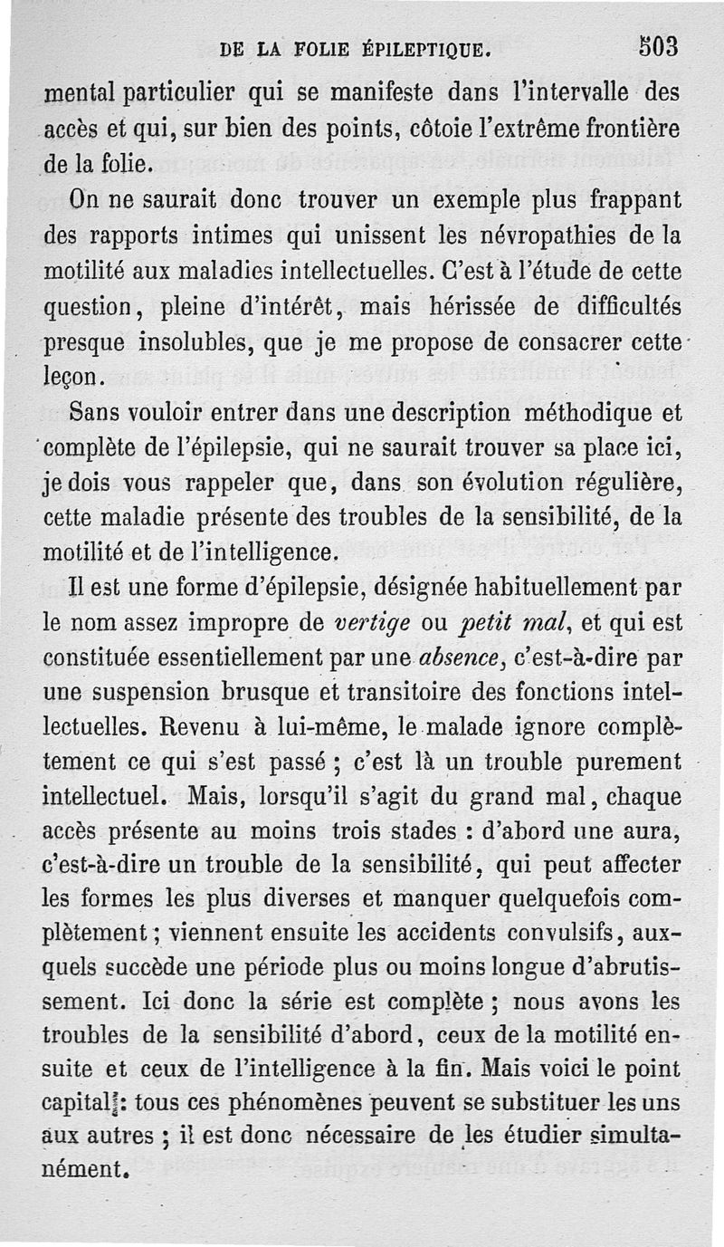 Leçons sur les maladies mentales
