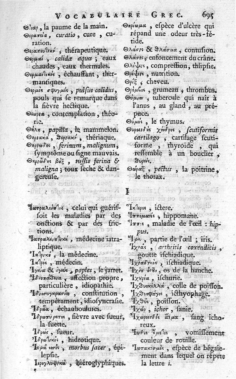 Dictionnaire portatif de médecine, d'anatomie, de chirurgie, de pharmacie, de chymie, d'histoire naturelle, de botanique et de physique, qui contient les termes de chaque art, leur étymologie, leur définition et leur explication, tiré des meilleurs auteurs ; avec un vocabulaire grec et un latin, à l'usage de ceux qui lisent les auteurs anciens, ouvrage utile à ceux qui pratiquent ces arts et nécessaire aux étudiants, par Jean-Fr. Lavoisien, ancien chirurgien des hôpitaux des armées, et maître en chirurgie à Eu