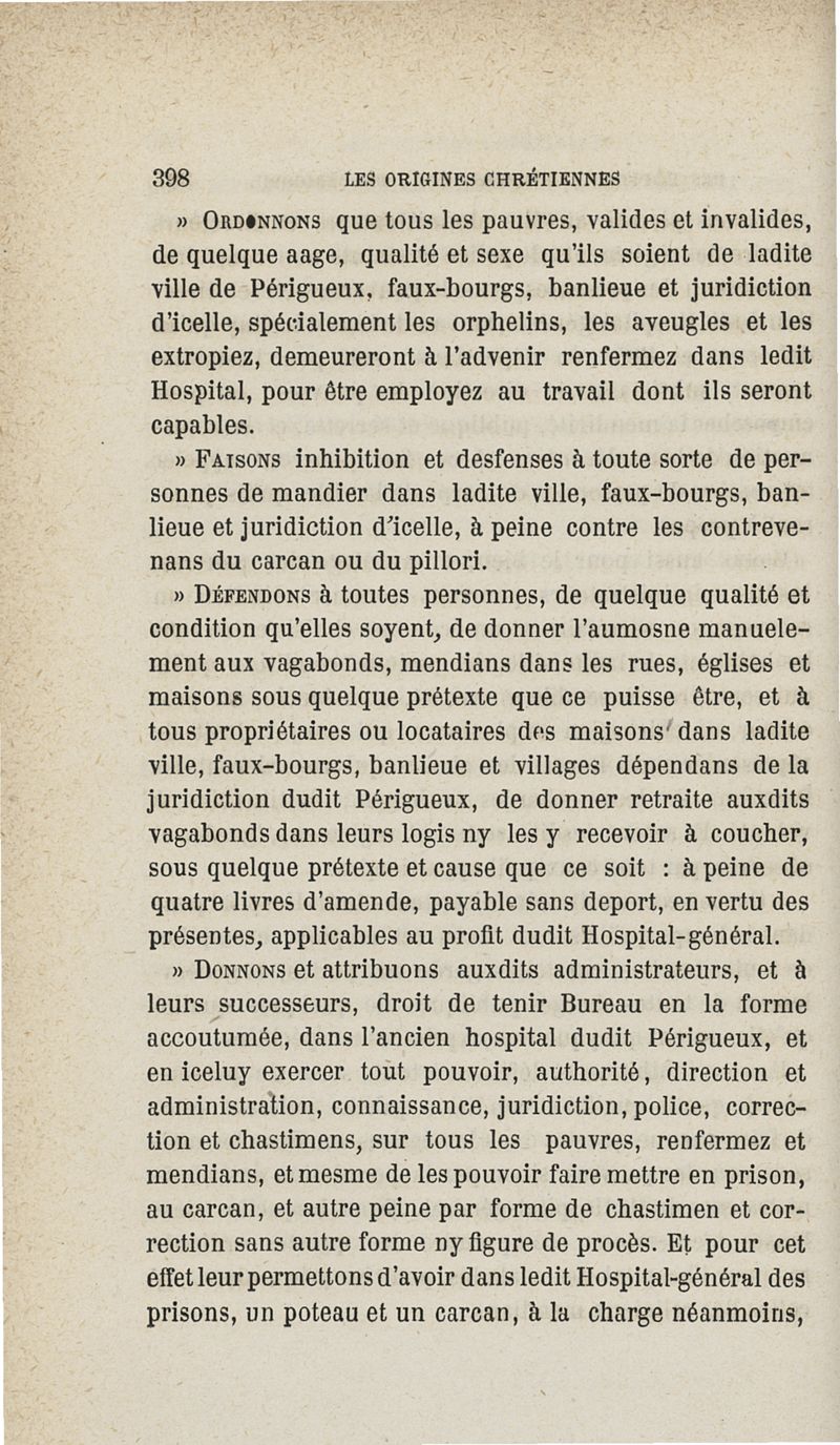 Les origines chrétiennes des hôpitaux, hospices et bureaux de bienfaisance du Périgord