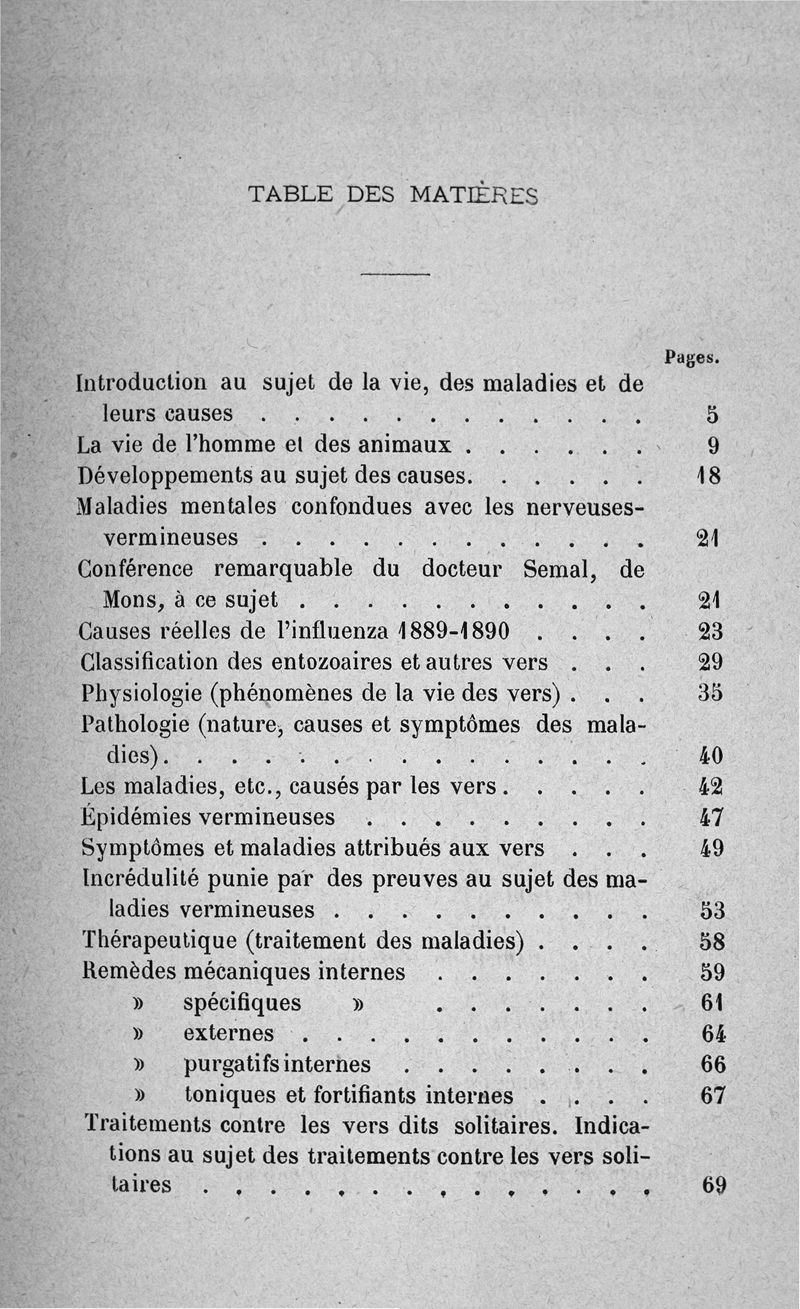 Dangers permanents des vers intestinaux et autres chez l'homme et les animaux, causes des neuf dizièmes de nos maladies et des 99 centièmes des maladies nerveuses. Moyens rationnels de les combattre. Révélations surprenantes avec preuves irrécusables. Suivi de conseils pour atteindre un âge avancé, sans maladies, sans infirmités. Par une Association scientifique de professeurs-émérites belges et étrangers