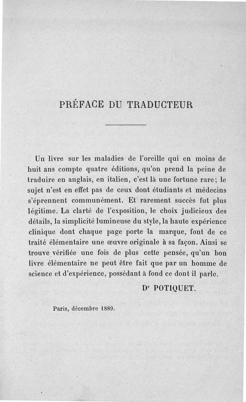 Les Maladies de l'oreille et leur traitement, par le Dr Arthur Hartmann,... Ouvrage traduit sur la 4e édition (1889) et annoté par le Dr Potiquet,...
