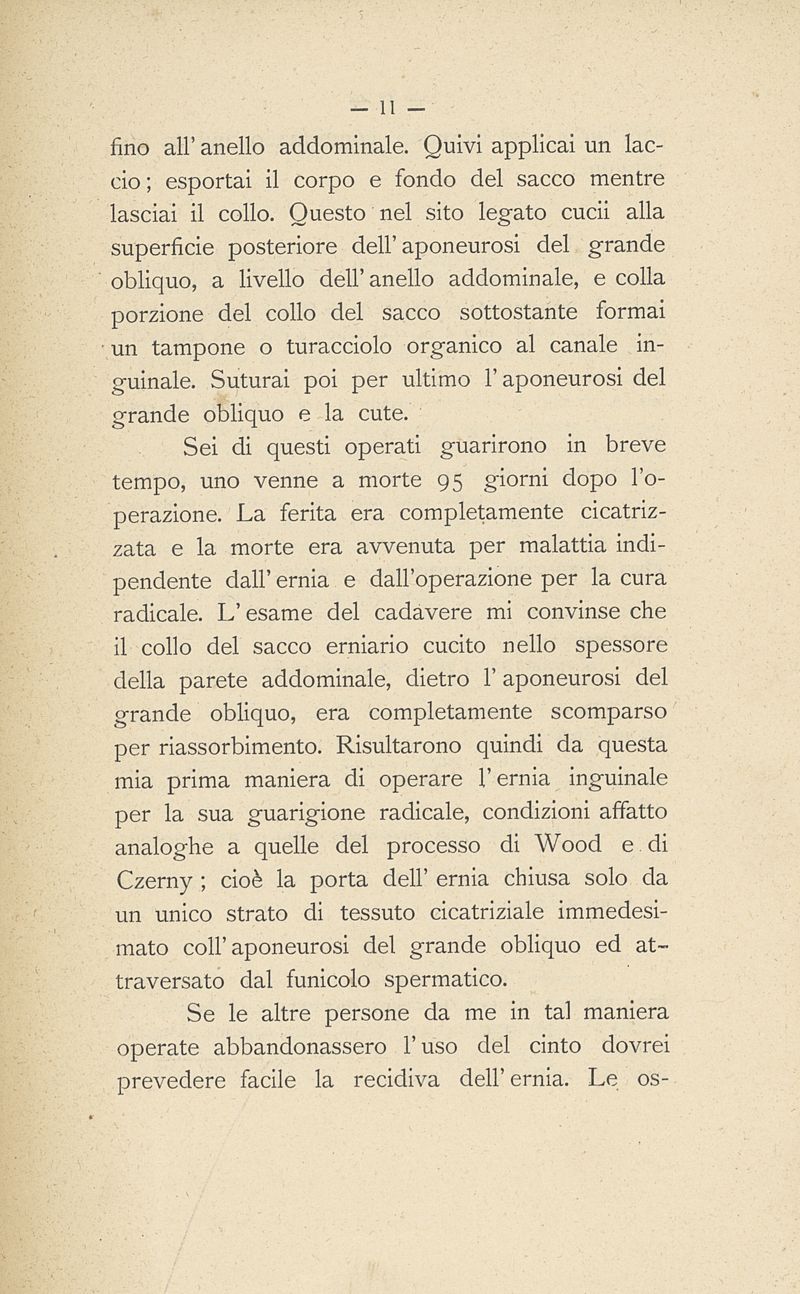 Nuovo metodo operativo per la cura dell'ernia inguinale