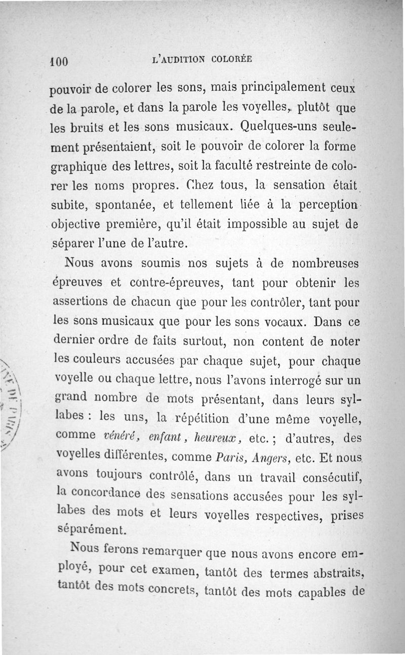L'audition colorée : étude sur les fausses sensations secondaires physiologiques et particulièrement sur les pseudo-sensations de couleurs associées aux perceptions objectives des sons.