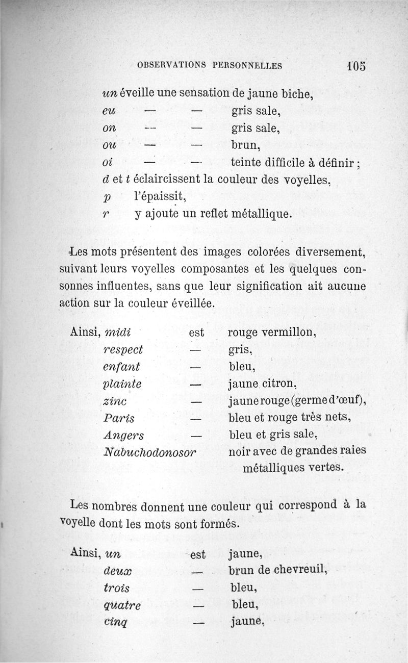 L'audition colorée : étude sur les fausses sensations secondaires physiologiques et particulièrement sur les pseudo-sensations de couleurs associées aux perceptions objectives des sons.