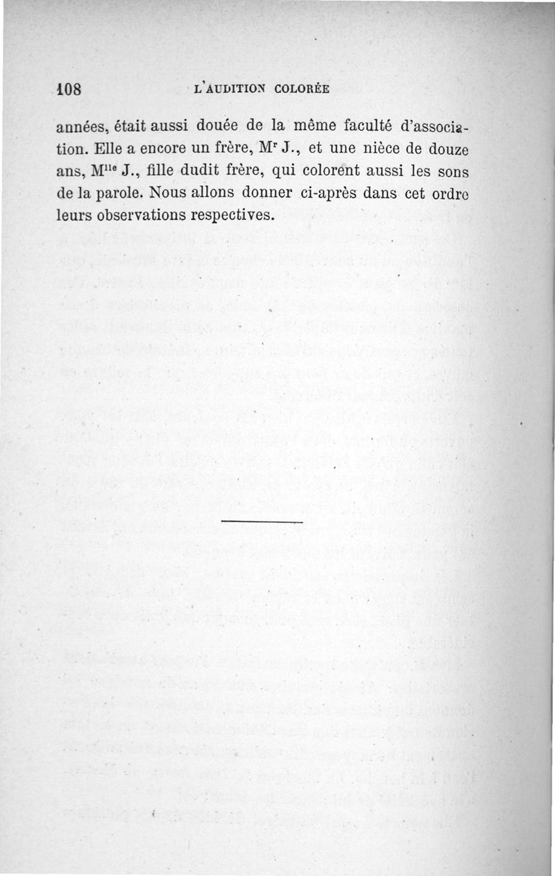L'audition colorée : étude sur les fausses sensations secondaires physiologiques et particulièrement sur les pseudo-sensations de couleurs associées aux perceptions objectives des sons.