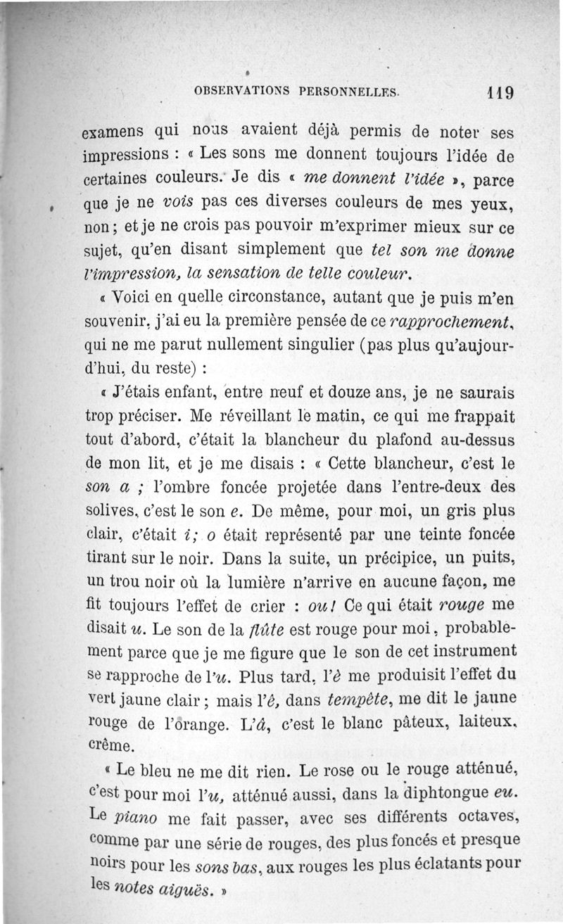 L'audition colorée : étude sur les fausses sensations secondaires physiologiques et particulièrement sur les pseudo-sensations de couleurs associées aux perceptions objectives des sons.