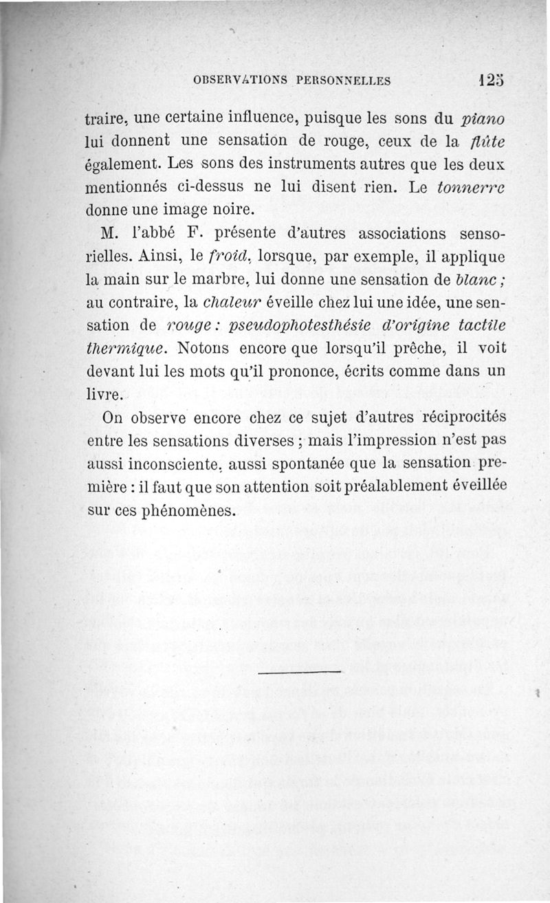L'audition colorée : étude sur les fausses sensations secondaires physiologiques et particulièrement sur les pseudo-sensations de couleurs associées aux perceptions objectives des sons.
