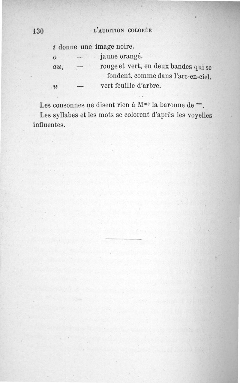 L'audition colorée : étude sur les fausses sensations secondaires physiologiques et particulièrement sur les pseudo-sensations de couleurs associées aux perceptions objectives des sons.