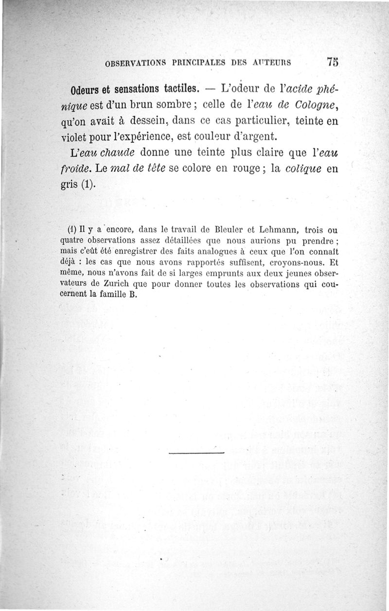 L'audition colorée : étude sur les fausses sensations secondaires physiologiques et particulièrement sur les pseudo-sensations de couleurs associées aux perceptions objectives des sons.