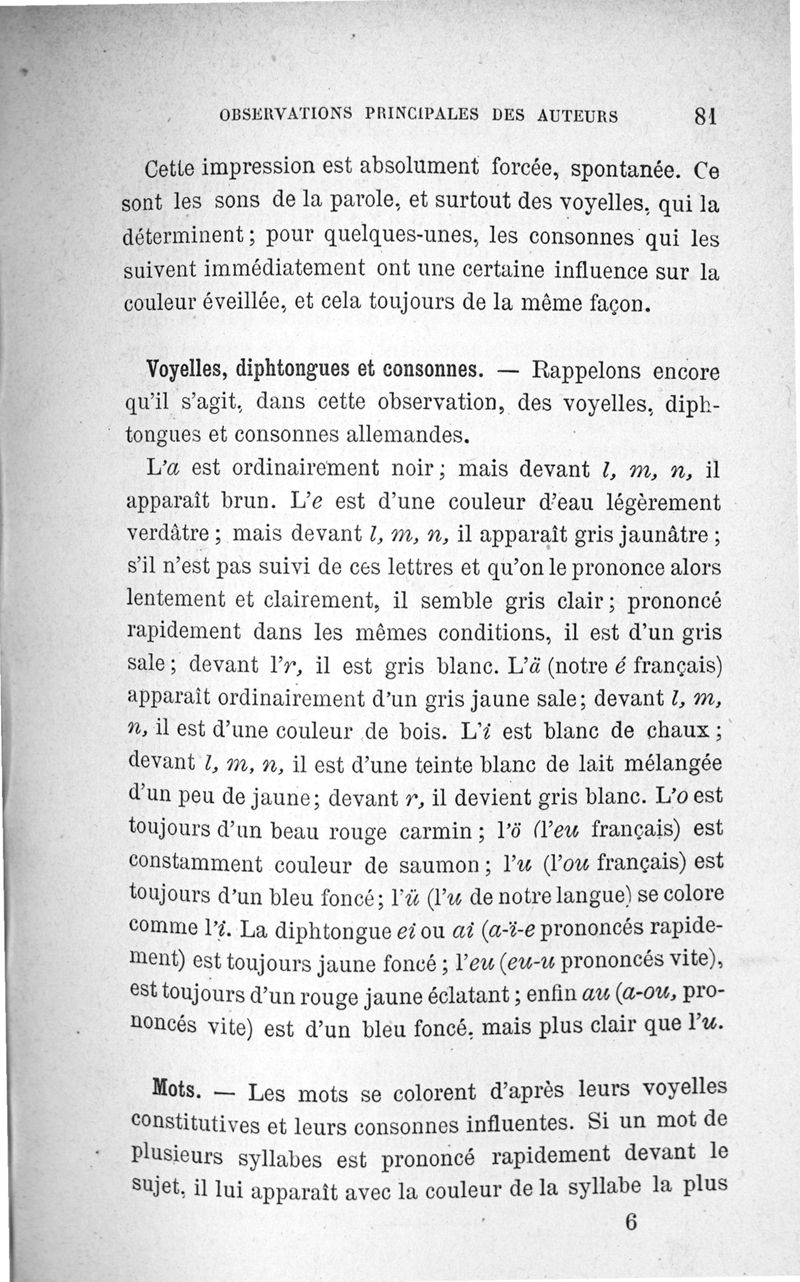 L'audition colorée : étude sur les fausses sensations secondaires physiologiques et particulièrement sur les pseudo-sensations de couleurs associées aux perceptions objectives des sons.