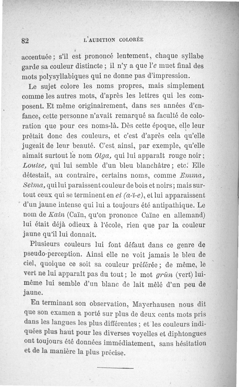 L'audition colorée : étude sur les fausses sensations secondaires physiologiques et particulièrement sur les pseudo-sensations de couleurs associées aux perceptions objectives des sons.