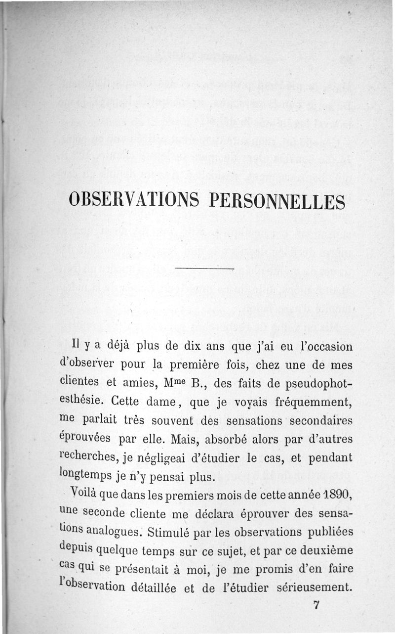 L'audition colorée : étude sur les fausses sensations secondaires physiologiques et particulièrement sur les pseudo-sensations de couleurs associées aux perceptions objectives des sons.