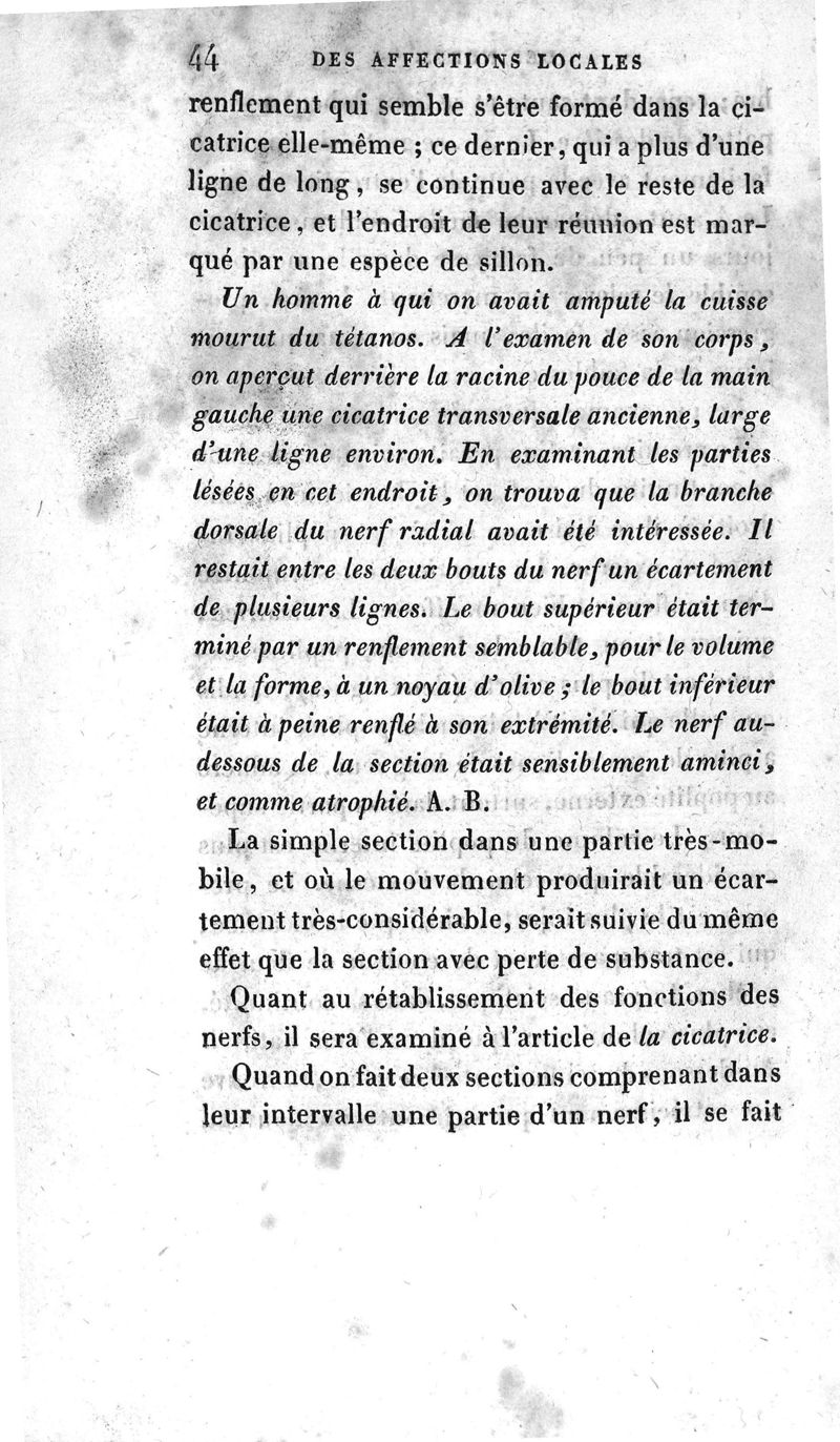 Dissertation sur les affections locales des nerfs, par Pierre-Jules Descot,... travail fait sous la direction de M. Béclard,... et enrichi de nombreuses observations fournies par MM. Béclard, Dupuytren, Marjolin, Richerand, Roux, Moreau (Évrat), Ribes, A. Richard, Bérard, Bogros et Briquet, avec ses additions (1825)