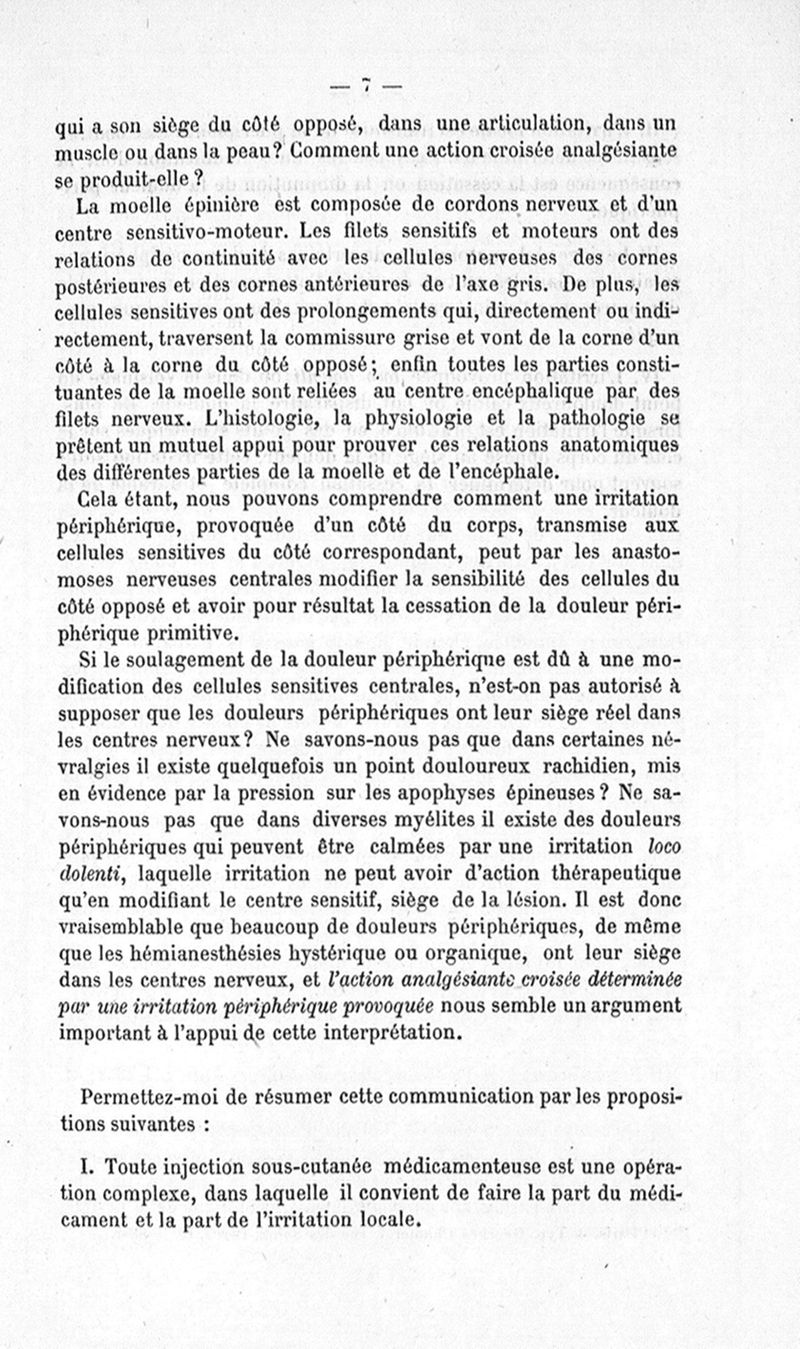 Note sur l'analgésie thérapeutique locale déterminée par l'irritation de la région similaire du côté opposé du corps