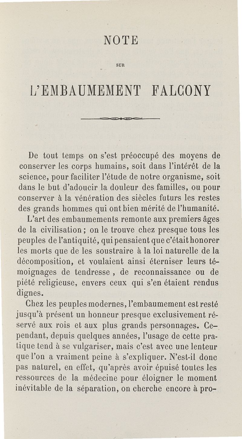 Note sur l'embaumement Falcony