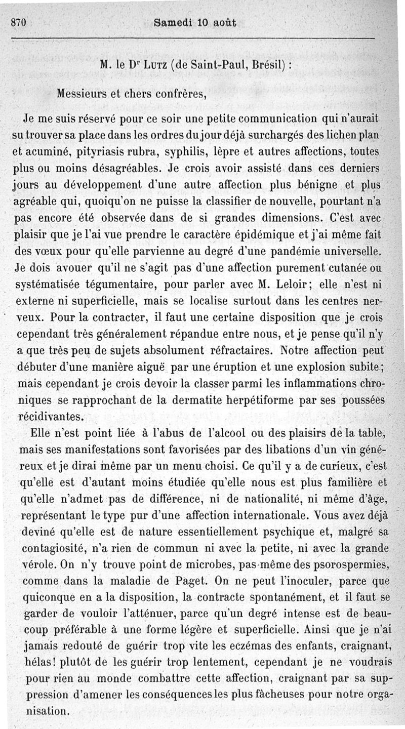 Congrès international de dermatologie et de syphiligraphie tenu à Paris en 1889. Comptes rendus publiés par le Dr Henri Feulard, secrétaire général