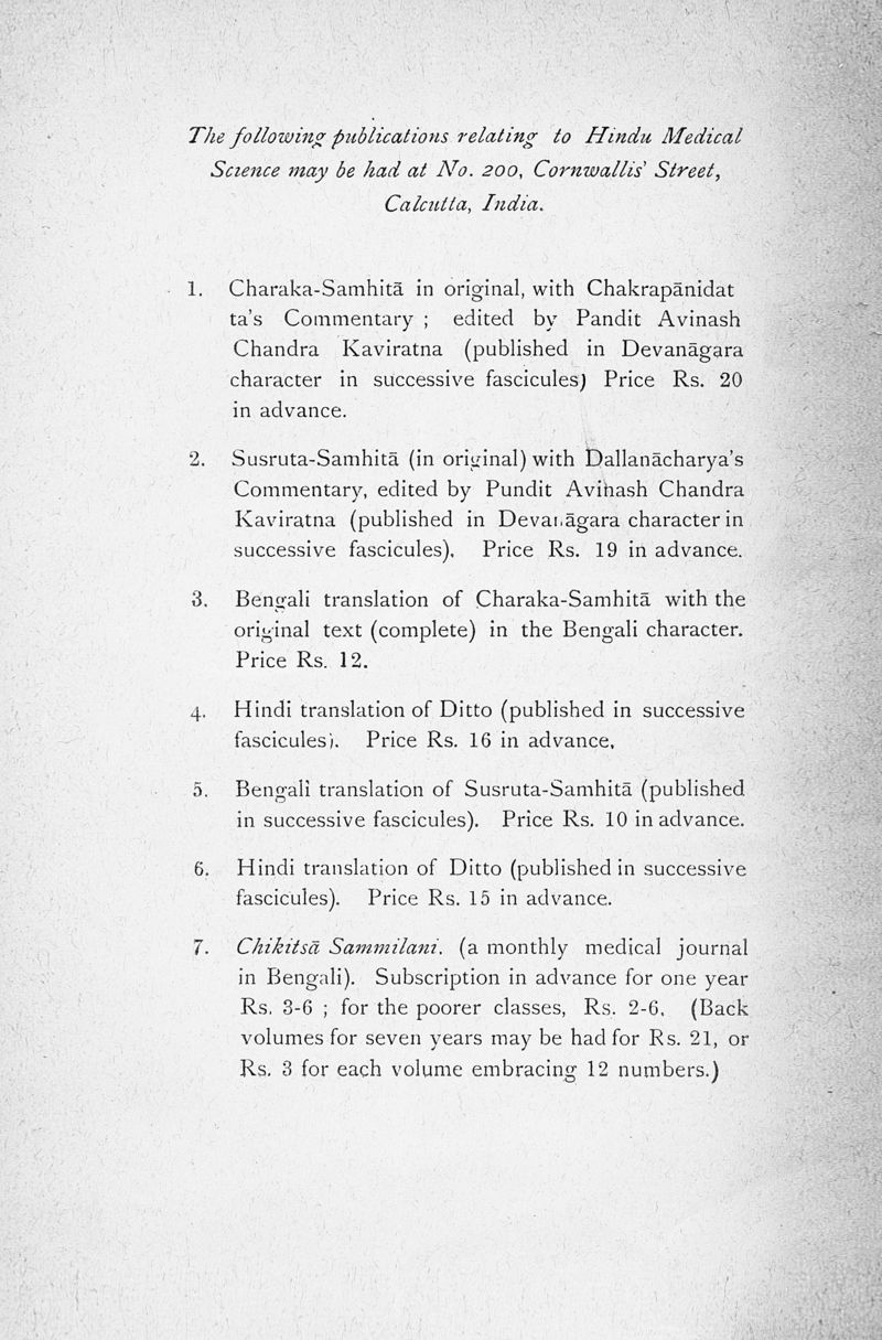 Caraka / Kaviratna, Avinash Chunder.