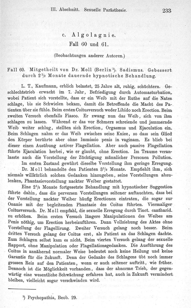 Die suggestions-therapie bei krankhaften erscheinungen des geschelchtssinnes