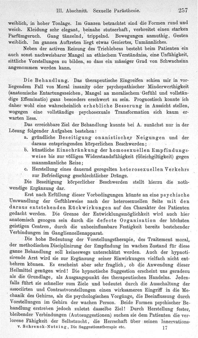 Die suggestions-therapie bei krankhaften erscheinungen des geschelchtssinnes