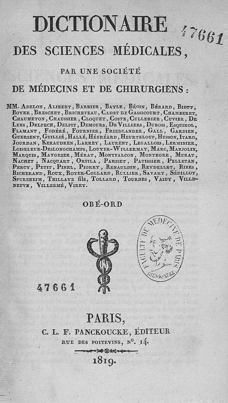 Dictionnaire des sciences médicales / vol. 37 (OBÉ - ORD)