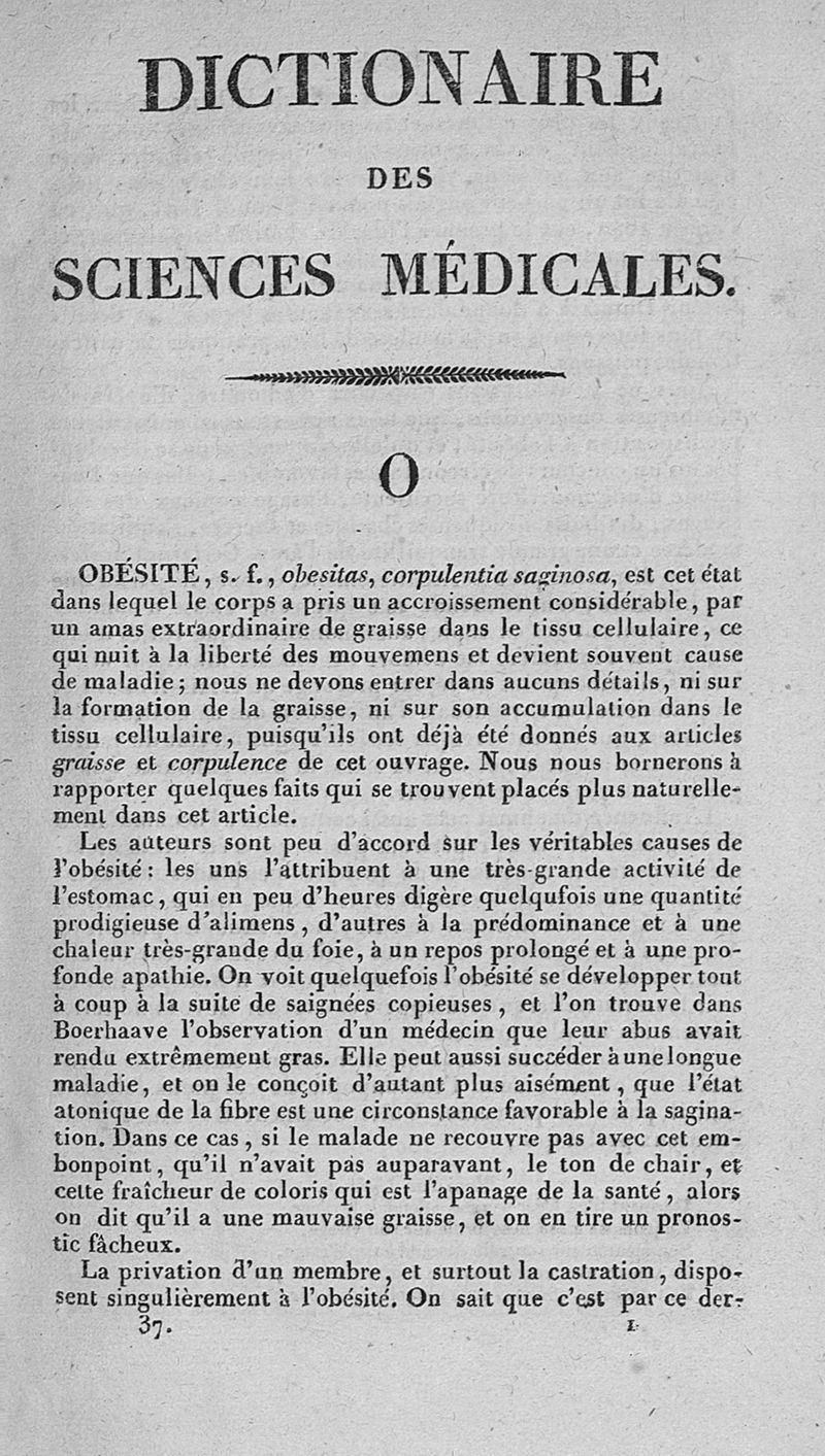 Dictionnaire des sciences médicales / vol. 37 (OBÉ - ORD)