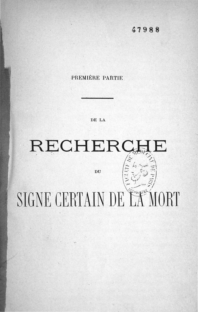 De la recherche du signe certain de la mort et de l'unité de la vie. Thèse de doctorat en médecine préparée pour être soutenue devant la Faculté de Médecine de Toulouse