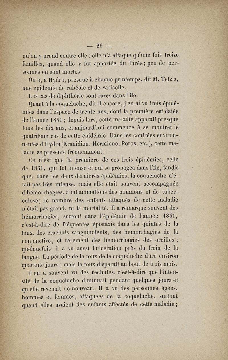De l'île d'Hydra (Grèce) au point de vue médical, et particulièrement du tzanaki, maladie spéciale de l'enfance, et des maladies des plongeurs