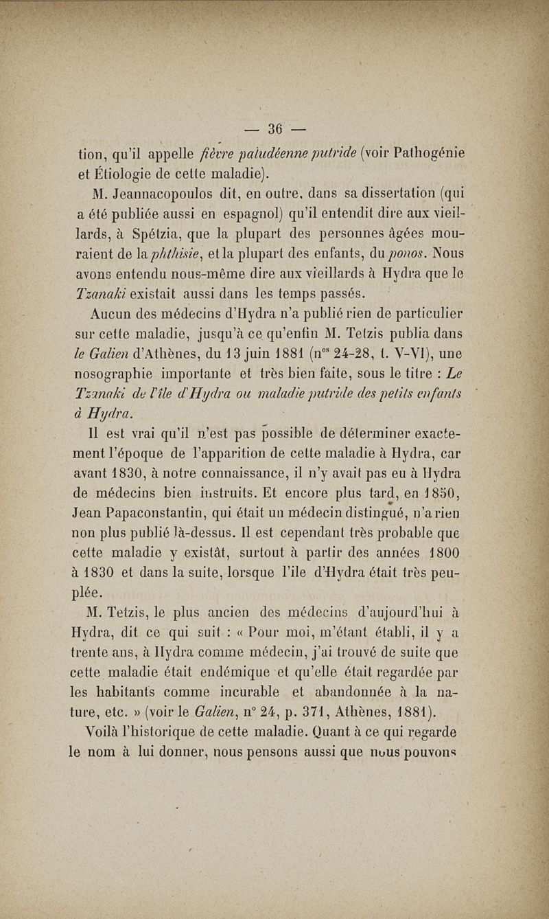 De l'île d'Hydra (Grèce) au point de vue médical, et particulièrement du tzanaki, maladie spéciale de l'enfance, et des maladies des plongeurs